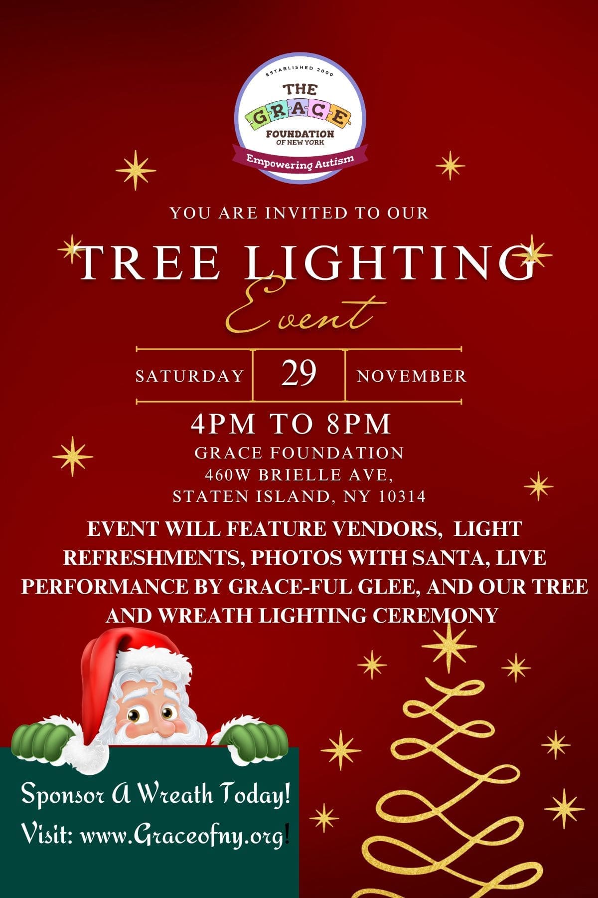 Join us on Saturday, November 29th from 4pm to 8pm for our GRACE-Ful tree lighting event feauturing vendors, photos with Santa Claus, sweet treats, caroling and more!